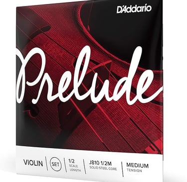 D’Addario Prelude Violin String Set, 1/2 Scale Medium Tension – J810 1/2M - Solid Steel Core, Warm Tone, Economical and Durable – Educator’s Choice Strings – 1 Set (4)(£3.90-£6.40 J812 1/2 1 string) Advice: Check Strings