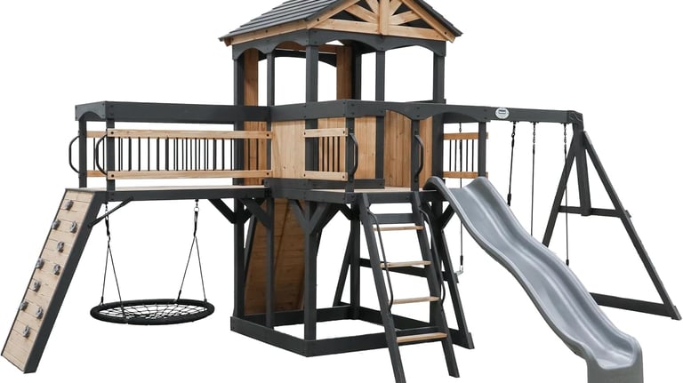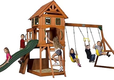 Timber Crossing 100% Cedar Wood Swing Set | Outdoor Playgroung & Climbing Frame for Children | 1 Web Disc and 2 Belt.(EASY ASSEMBLY: Supported by the step-by-step interactive BILT app.)