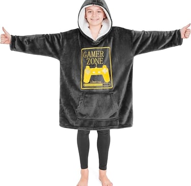 Comfort Hoodie Blanket for Children & Teenagers Fleece Blanket Warm Gamer/ Football Oversized Sherpa Hood Choice 13