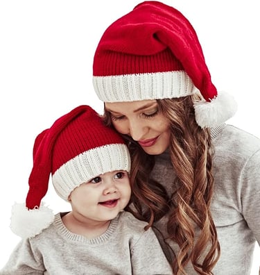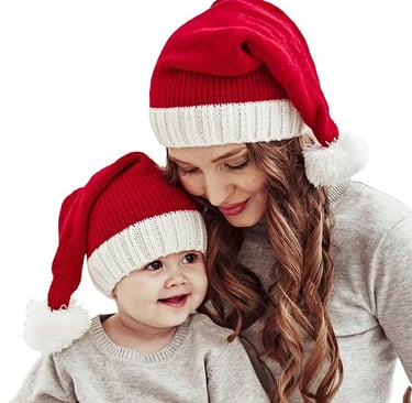 Lancry 2PCS Christmas Hat, Santa Hat, Parent-Child Knitted Xmas Holiday Hat Warm Soft for Adults Kids (up to Toddlers)