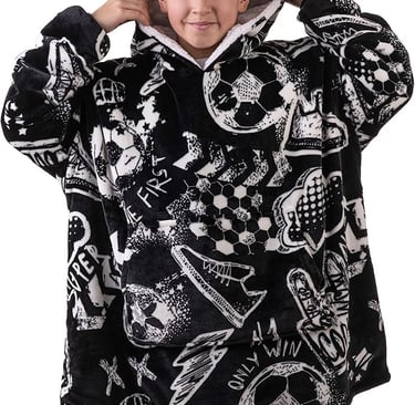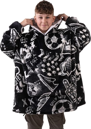 Big Softy Football Blanket Hoodie Black Kids Oversized Hoodie, Football for Boys, Girls,Teens Men (Adults £26.99)