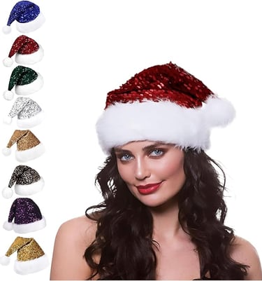 Aisszhao Sequin Santa Hat - Velvet Plush Father Christmas Hat for Adults & Children - Shiny Sequin Unisex Costume for Christmas & New Year Parties