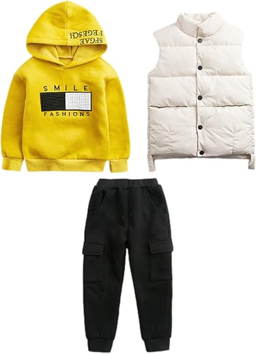Boy's Tracksuit Hoodie Sweatshirt + Vest Top + Jogging Pants Winter Outfits Set for Age 3-12 Years 3 Options